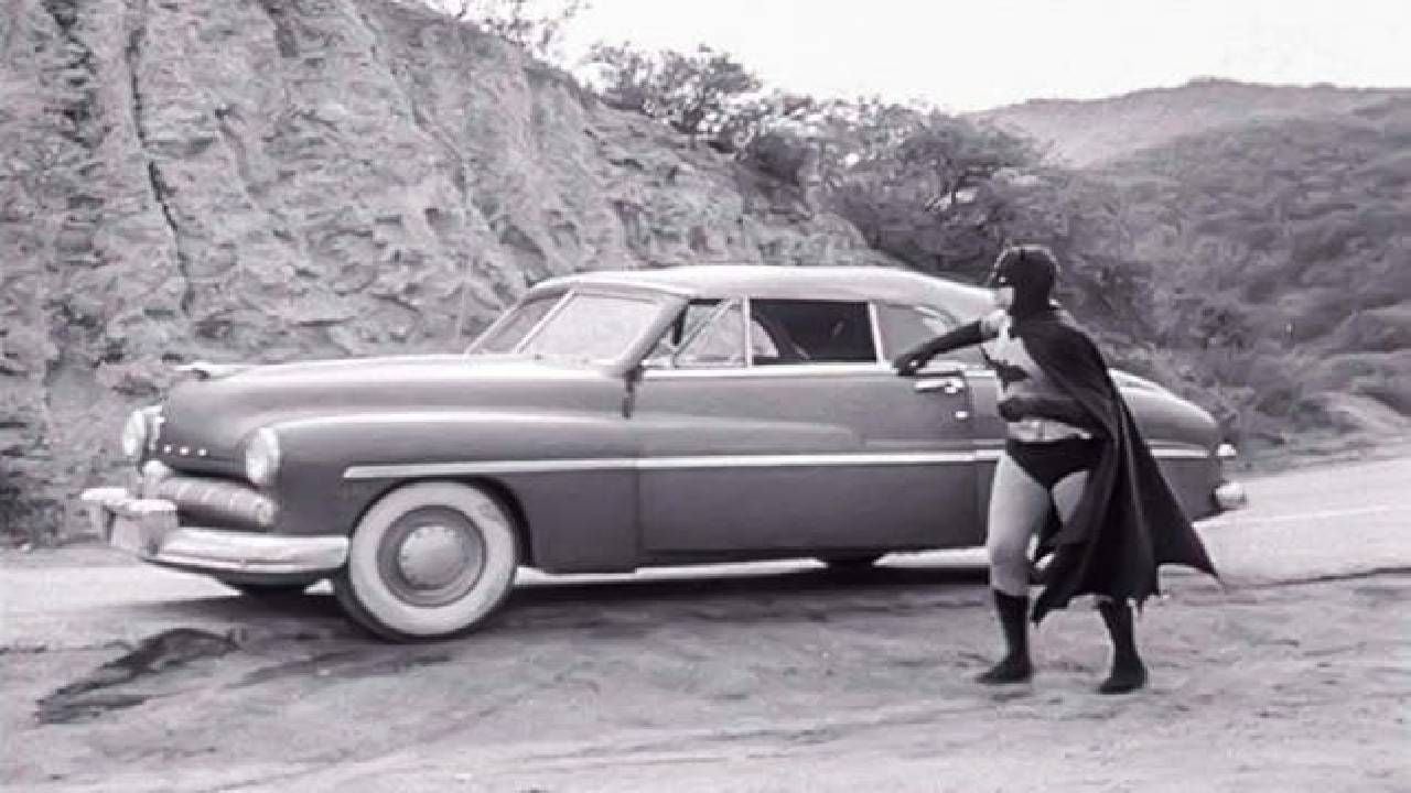 Lewis Wilson y Robert Lowery fueron los primeros en interpretar a Batman en uns erial de 1943, cuya austeridad no sólo fue evidente en el batitraje, también en el batimóvil. Se usaron dos convertibles, un Cadillan y un Mercury, para transportar al caballero oscuro y Robin, pero los mismos autos eran usados cuando el encapotado se quitaba el vestuario y salía como Bruce Wayne. Era un pésimo maestro del disfraz.