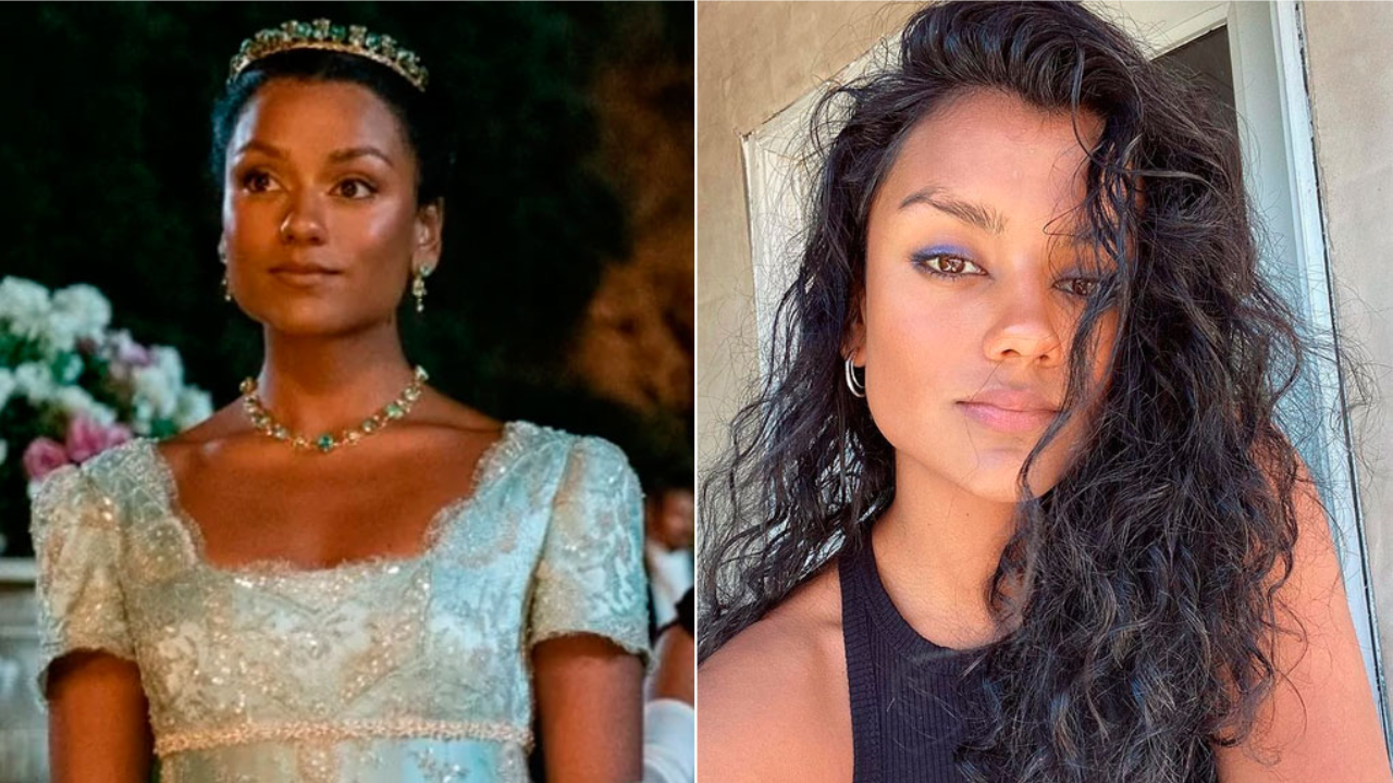 La mayor de las hermanas Sharma y punta del triángulo amoroso luce muy diferente cuando se quita el vestuario. Simone Ashley es hermosa con o sin él.