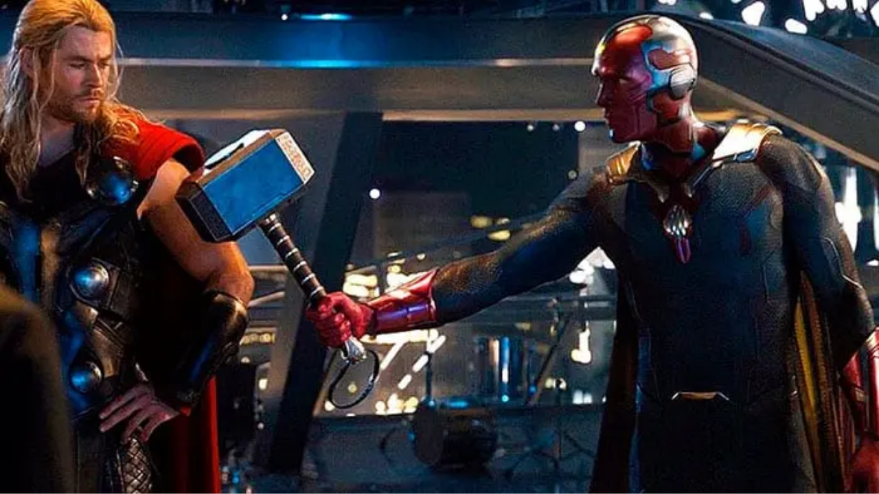 En pantalla es el único momento en que Vision ha podido levantar el martillo de Thor, ya que en los cómis no ocurre tal situación. Sin embargo, los guionistas de Era de Ultrón necesitaban una forma en la que el personaje de Paul Bettany demostrara que es confiable, y ¡voilá! el Mjolnir fue la solución.