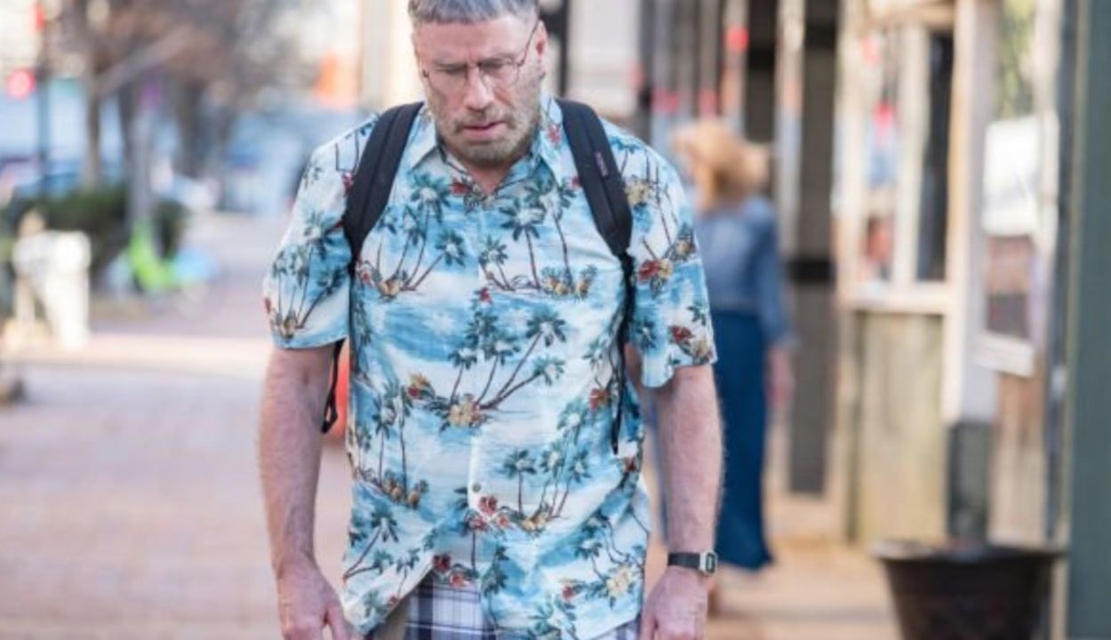Además de los kilos, Travolta también se tiñó el cabello de gris y se dejó las canas, con un aspecto fachoso de bermudas y camisa un tanto arrugada, el actor de Grease hizo un papel perfecto.