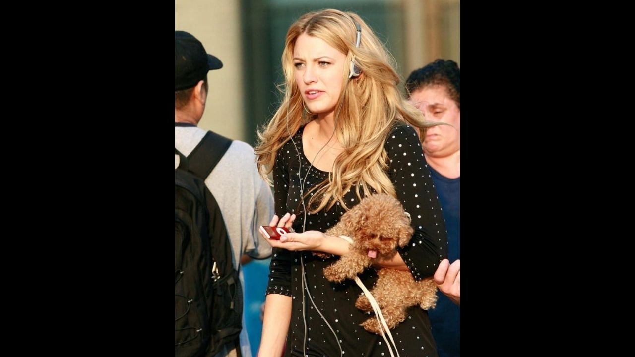 La actriz no desaprovechaba la oportunidad y llevaba su iPod a todos lados, con mascota incluida.