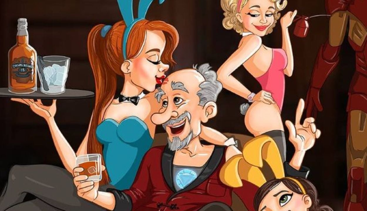 Aunque es un gran superhéroe, también se sabe que Tony Stark (Robert Downey Jr) ama las fiestas, razón por la cual lo representaron en su vejez de la mejor forma.