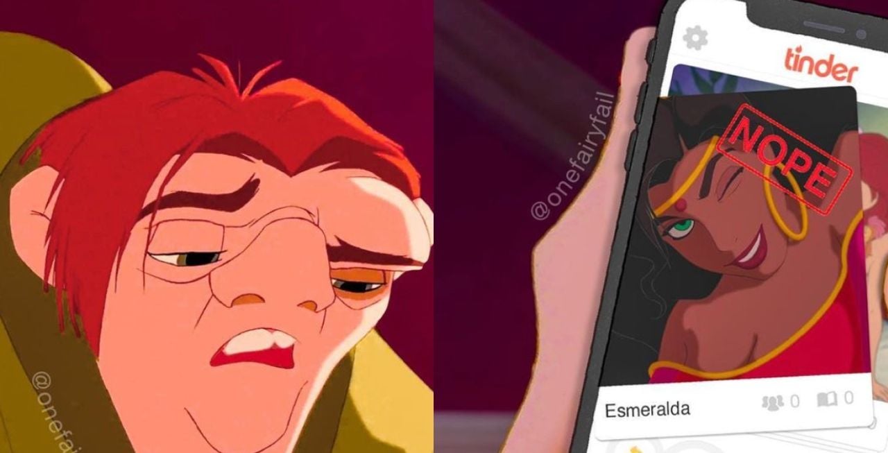 Imaginemos que personajes como Quasimodo de 'El jorobado de Notre Dame', o Ariel de 'La Sirenita', vivieran en nuestra época. Claro que tendrían que ser personajes modernos y por supuesto, estarían familiarizados con el mundo de las redes sociales, como son Tinder o TikTok.