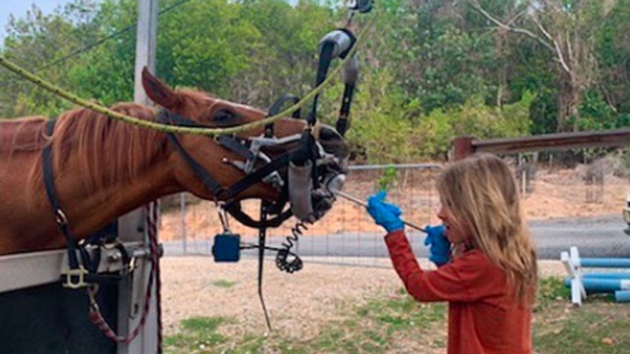 Una de las pasiones de India Rose Hemsworth es la equitación , deporte al que le dedica tiempo y cuidados como lo vemos en la imagen. La atención de Indi con el equino es admirable y por supuesto su madre no podía dejar de compartirlo.