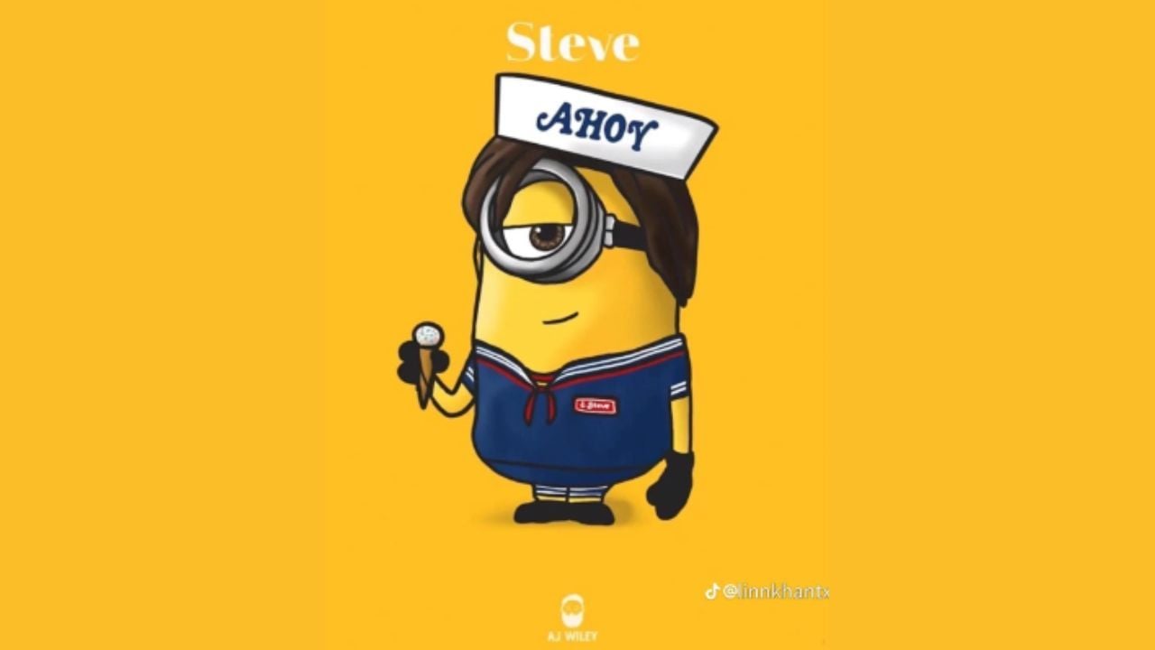 En su versión de Minion, Steve (Joe Keery) usa su icónico uniforme de Scoops Ahoy!, heladería en la que trabajó junto a Robin (Maya Hawke) durante la tercera temporada, antes de que el Mind Flyer destruyera el centro comercial.