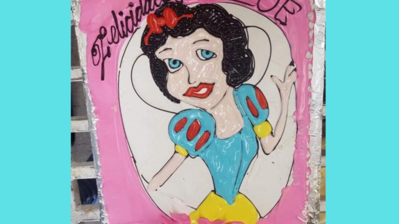 La primera princesa de Disney, es considerada la más bella de todas, esto gracias a su amabilidad y pureza, tras encontrar al amor de su vida, Blancanieves se entera de que su madrastra pretende matarla, lo que la hace huir de su casa, es así como encuentra refugio en una cabaña con 7 enanos ¿Comprarías el pastel para la fiesta de tu hij@?
