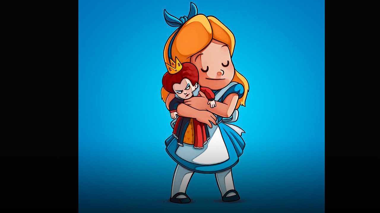 Ni Alicia pudo resistirse a abrazar pequeña Reina Roja. Su vestido y sus accesorios la hacen parecer una linda muñeca de trapo, pero eso sí, con cuidado porque podríamos perder la cabeza.
