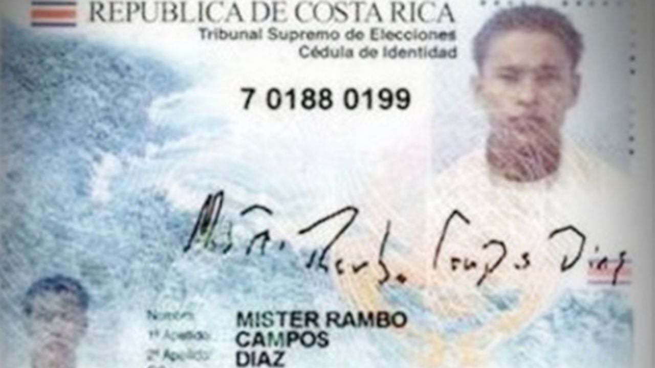 Acá otra persona con un nombre que aparece en la famosa lista de nombres prohibidos, solo que es de Costa Rica. Parece ser que sus padres son fans de las películas de Rambo, protagonizadas por Sylvester Stallone.