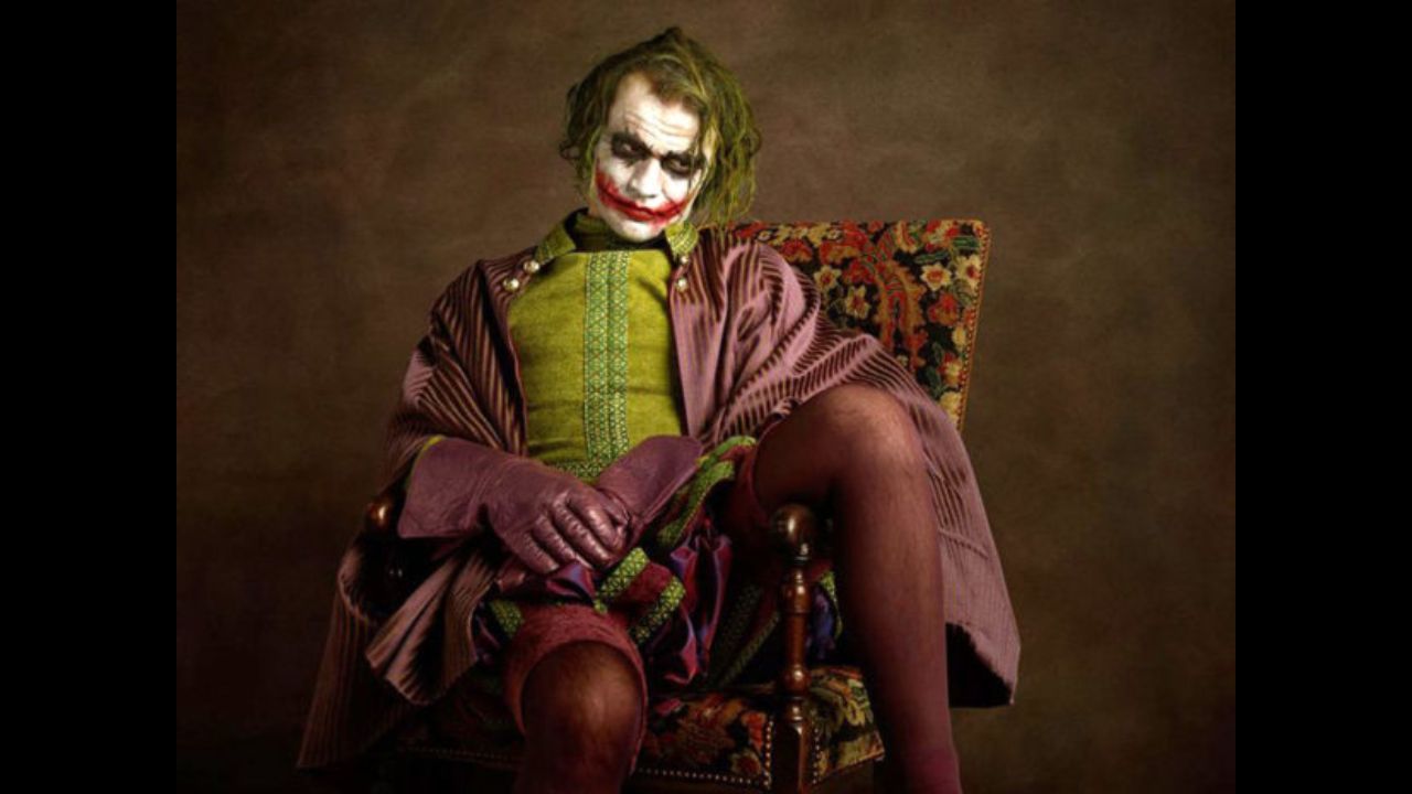 Inspirado en el Joker de Heath Ledger, aquí vemos al anarquista y caótico personaje desafiando las poses renacentistas.