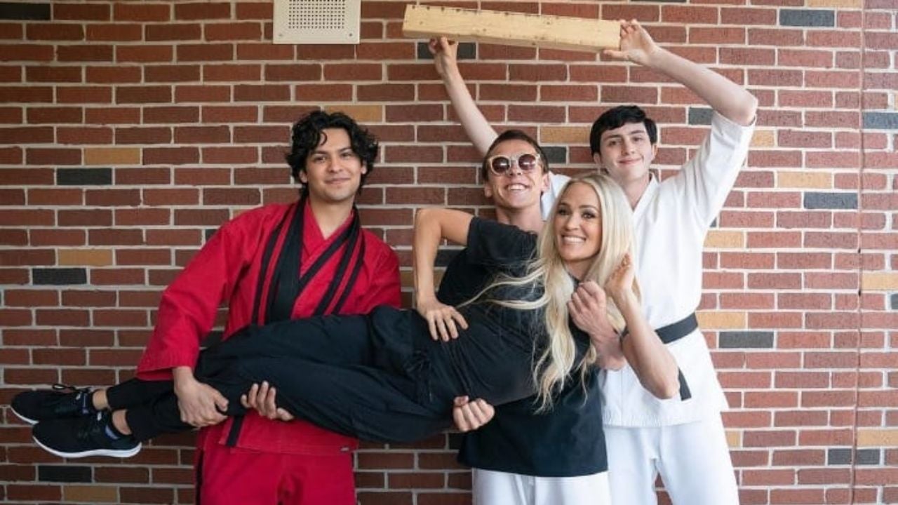 La cantante Carrie Underwood actuó en la serie y Xolo Maridueña, Gianni DeCenzo y Jacob Bertrand no dejaron pasar la oportunidad de tomarse una divertida foto con ella por un juego de palabras en inglés: "The boys carrying wood while carrying Carrie Underwood under wood" (Los chicos llevando madera mientras llevan a Carrie Underwood debajo de madera), escribió Maridueña en Instragram.