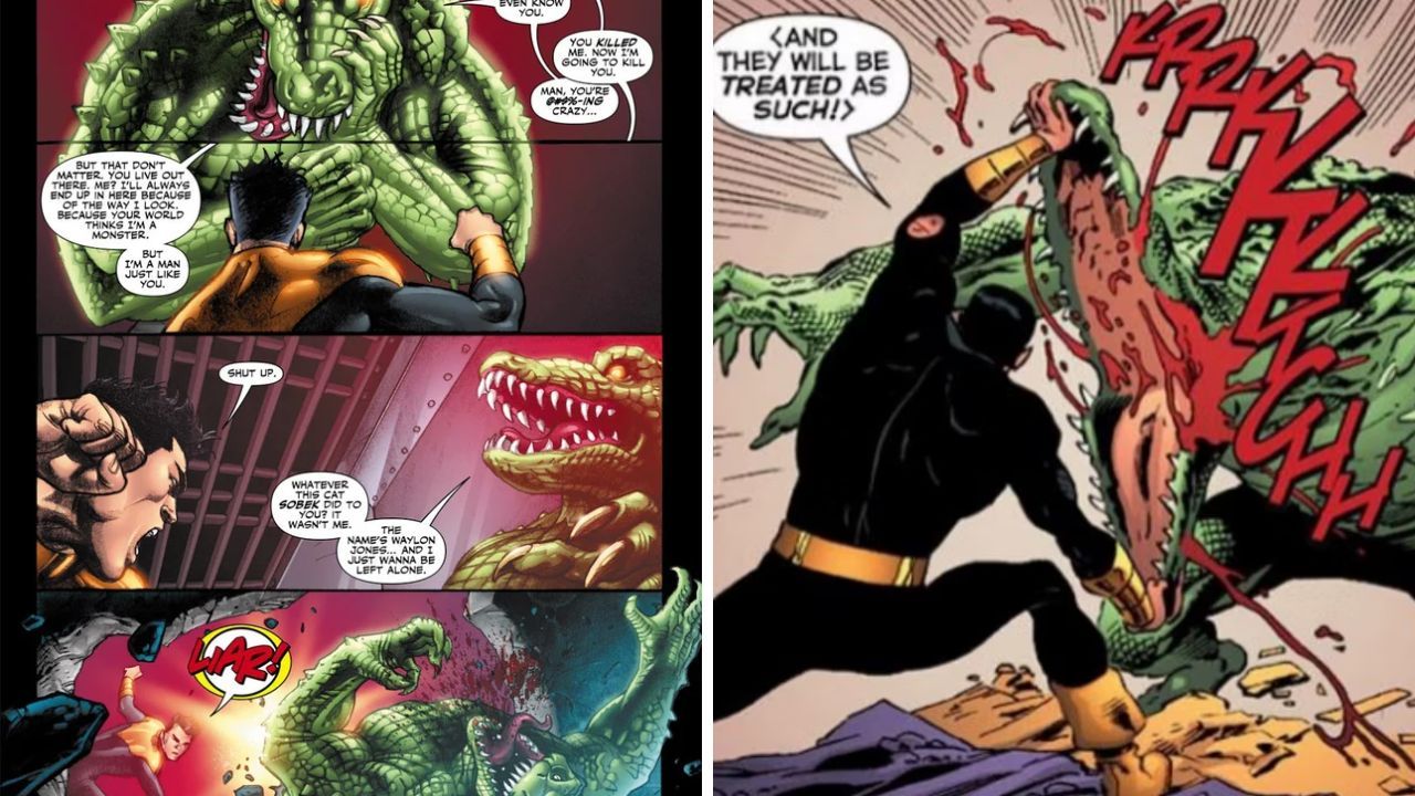 Sobek era en realidad Yurrd el Desconocido, uno de los Cuatro Jinetes de Apokolips. Inicialmente se hizo pasar por el manso Sobek, “el cocodrilo parlante” para ganarse la confianza de la familia de Black Adam, y poder matar a Isis y a Osiris. En un estado de ira y en búsqueda de venganza, Black Adam atacó a Sobek y le partió las mandíbulas por la mitad, matando al ser mítico al instante.