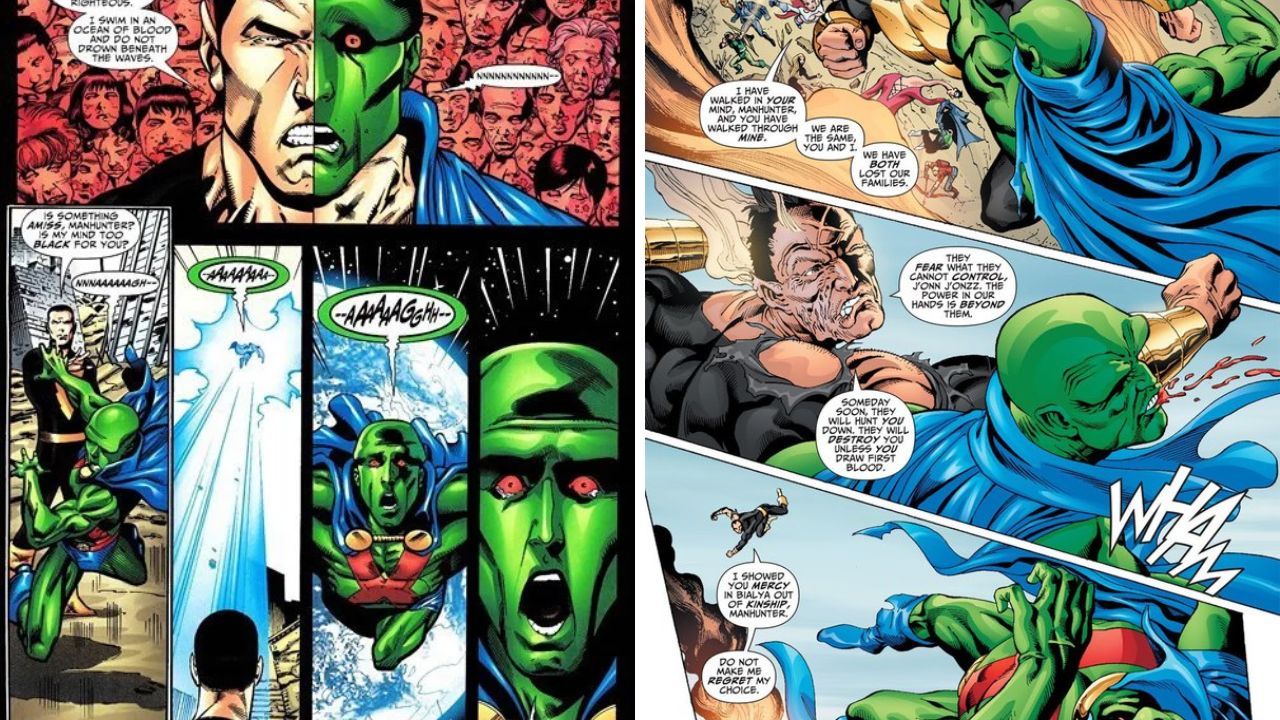 Martian Manhunter (que aparece al final de La Liga de la Justicia de Zack Snyder) es un extraterrestre con fuerza y capacidad sobrehumanas. Manhunter tiene una ligera ventaja en comparación con Superman: cuenta con sus habilidades psíquicas. Sin embargo, no tuvo ninguna posibilidad contra Black Adam. Durante la historia de la Tercera Guerra Mundial, Martian Manhunter fue capaz de entrar a su mente y ver todo el odio y la rabia dentro de Black Adam, pero esto no fue suficiente para derrotarlo.