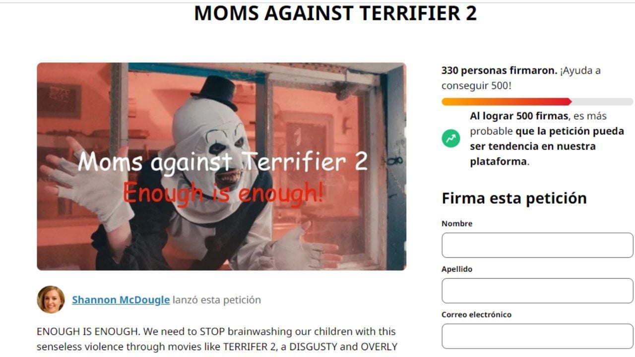 Pero las opiniones escritas no sólo provienen de los críticos cinematográficos, sino también de las madres de familia que consideran el cine de terror una amenaza para sus hijos. Por medio de la plataforma de activismo y peticiones más grande del mundo, Change.org, Shannon McDougle redactó una carta para manifestar su repudio contra Terrifier 2, asegurando que es una película que pretende, mediante el exceso y el sinsentido de la violencia, "lavar el cerebro de nuestros hijos".
