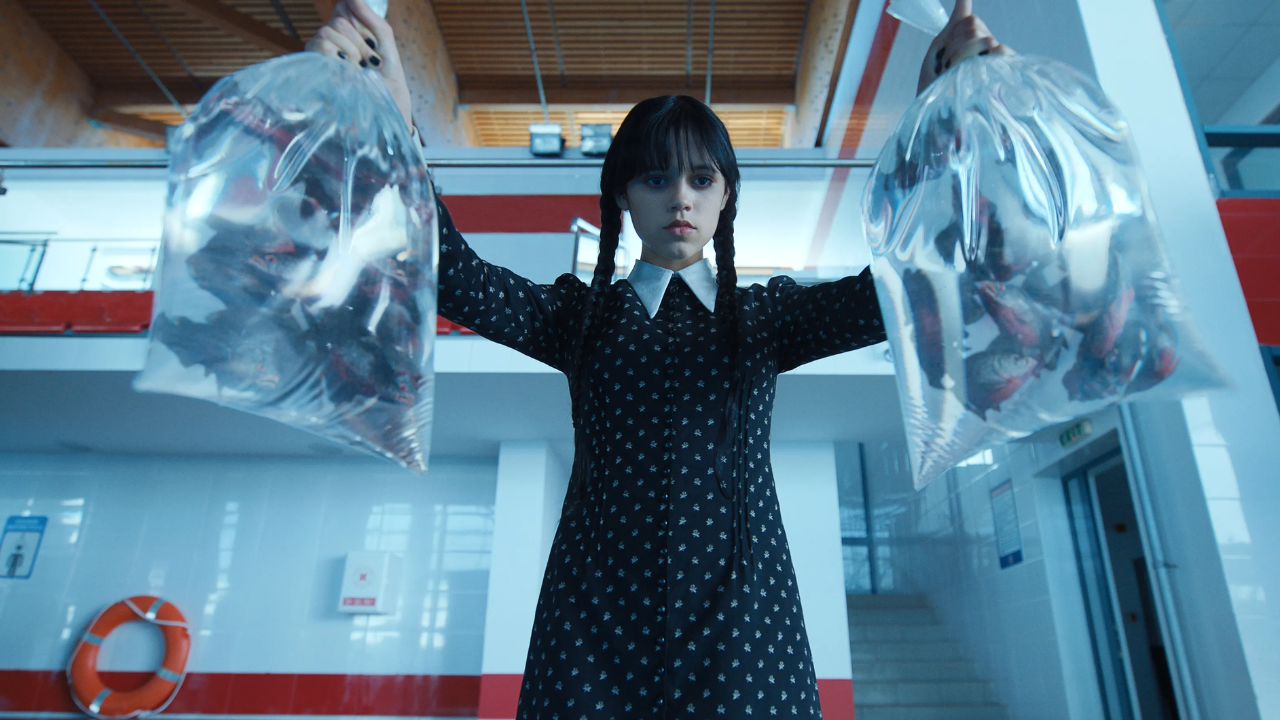 También hay monstruos por todas partes en Merlina, con un gigante matando niños en un bosque cercano, vampiros y sirenas. De hecho, la compañera de cuarto de la protagonista, Enid (Emma Myers), es parte de la tribu de los licántropos. Así como Harry tiene un búho llamado Hagrid que lo ayuda de vez en cuando, Merlina tiene su propio ayudante en forma de una mano cortada llamada “Dedos”.