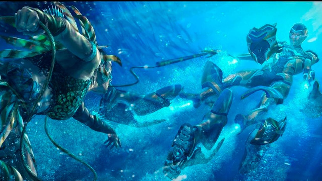 Las imágenes muestra nuevos talokanos que vestían armaduras de iniciación, de acuerdo con Saunders, en un principio se consideró que estos guerreros debían asesinar a un tiburones con sus propias manos como ritual para las nuevas generaciones. Luego tendrían que tomar los huesos y piel para elaborar su primer traje de batalla. Es aquí donde se aprecian diversos soldados con rostros pintados, distintos peinados y claro, diseños de armaduras variadas.