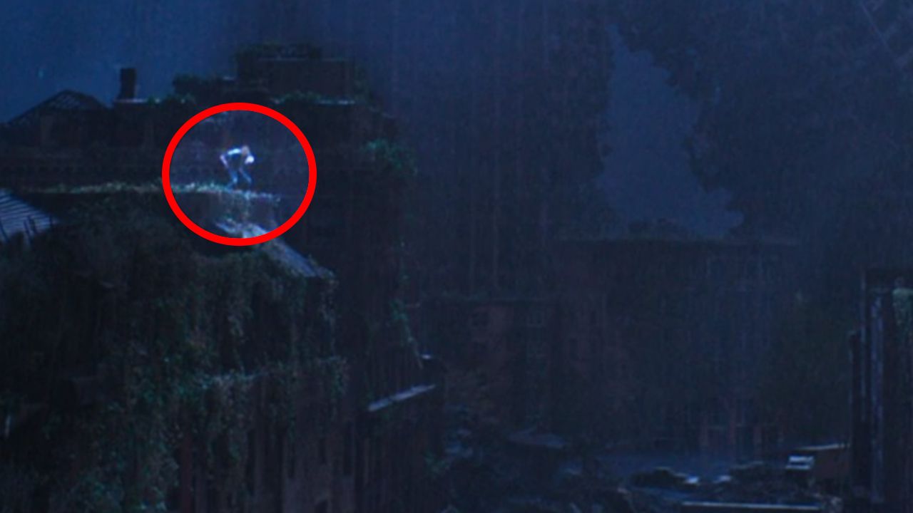 El dramático desenlace tiene un escenario nocturno, en medio de lluvia y un camino lleno de ruinas. Sin embargo, en el costado izquierdo de tu pantalla y ayudándote con el destello de una relámpago, podrás notar cómo una criatura humanoide se mueve de forma amenazante.