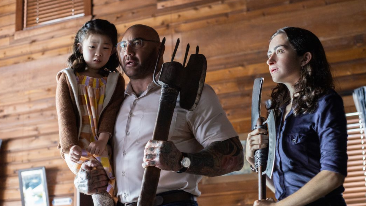 En Llaman a la puerta, película dirigida por M. Night Shyamalan que ya puedes disfrutar en las salas de Cinépolis y Cinemex, Bautista se desarrolla plenamente en un rol dramático al interpretar a Leonard, un hombre misterioso que aparece en una cabaña aislada con otros tres visitantes, para mantener a los integrantes de una familia como rehénes y les exige hacer un sacrificio para evitar el apocalipsis.