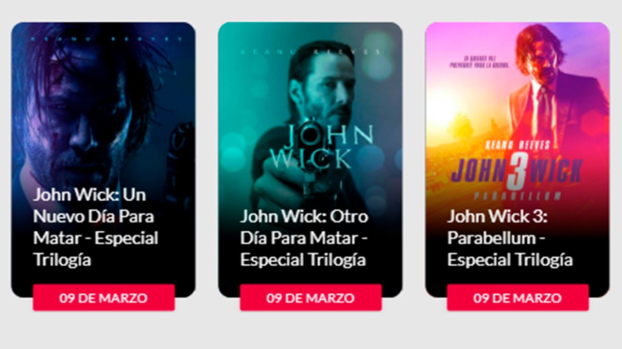 Si entras a la sección de próximos estrenos de la cadena que actualmente proyecta Ant-Man and the Wasp: Quantumania, podrás encontrar las primeras tres entregas de la saga. “Vive nuevamente en pantalla grande la trilogía John Wick, exclusivamente en Cinemex”, puede leerse en el sitio web.