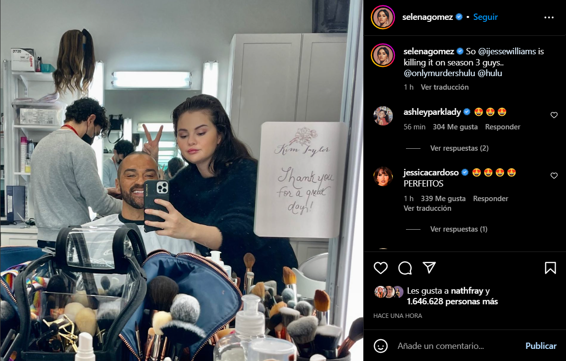 A través de Instagram, Selena Gomez compartió una fotografía dentro del área de maquillaje de la serie exclusiva de Star Plus. Entre brochas, luces y algunos maquillistas, es donde se asoma el rostro de Jesse Williams, conocido por interpretar al querido Dr. Jackson Avery junto a Ellen Pompeo de 2009 a 2022.