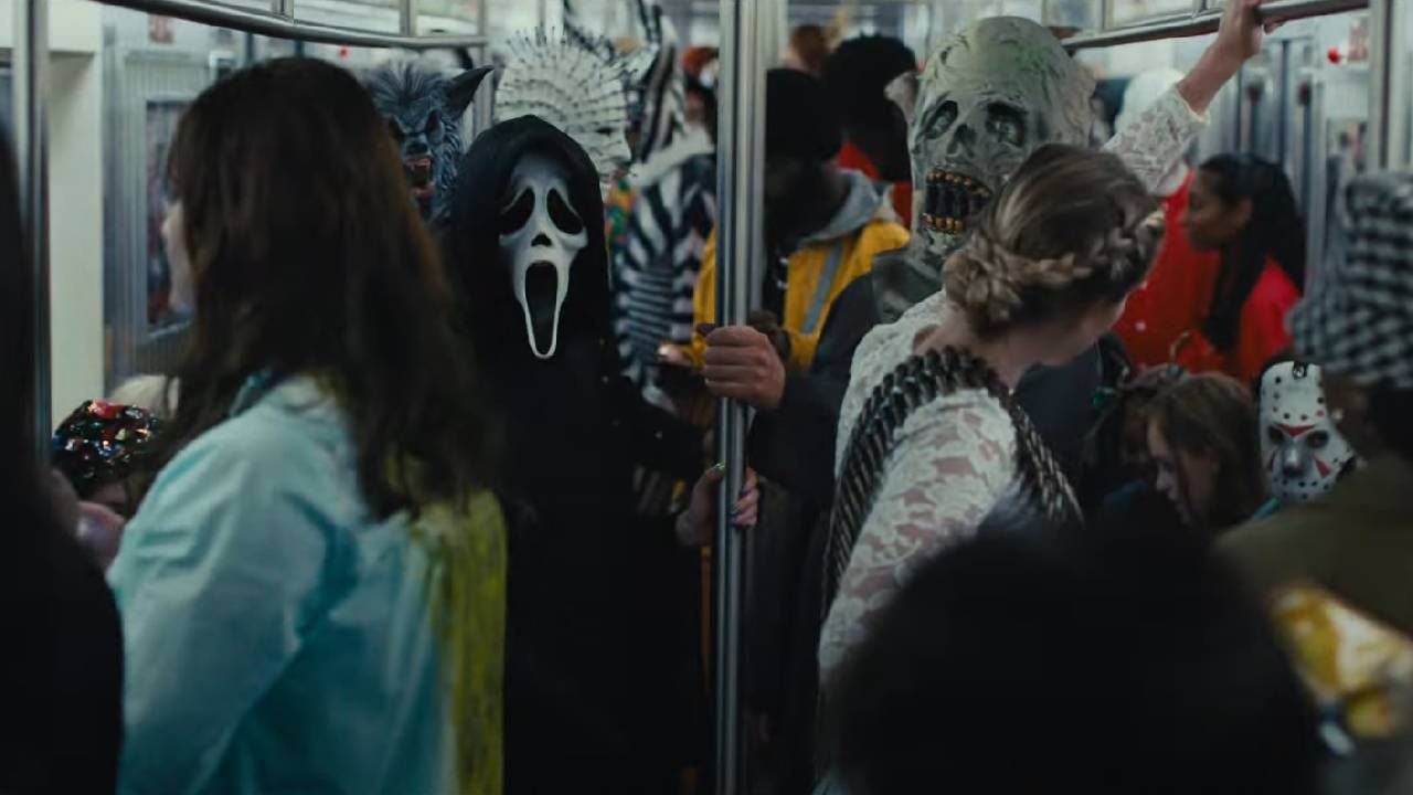 Si aún no han tenido la oportunidad de verla en la pantalla grande, la película continúa exhibiéndose en salas de Cinépolis y Cinemex, así que corran a verla porque a continuación revelaremos algunos spoilers. Hay una escena a lo largo de la cinta en la que los personajes de Barrera, Ortega y los demás atormentados descienden al famoso metro de Nueva York para perseguir a Ghostface. ¿Lo malo? Es que es Halloween y los vagones están repletos de personas disfrazadas.