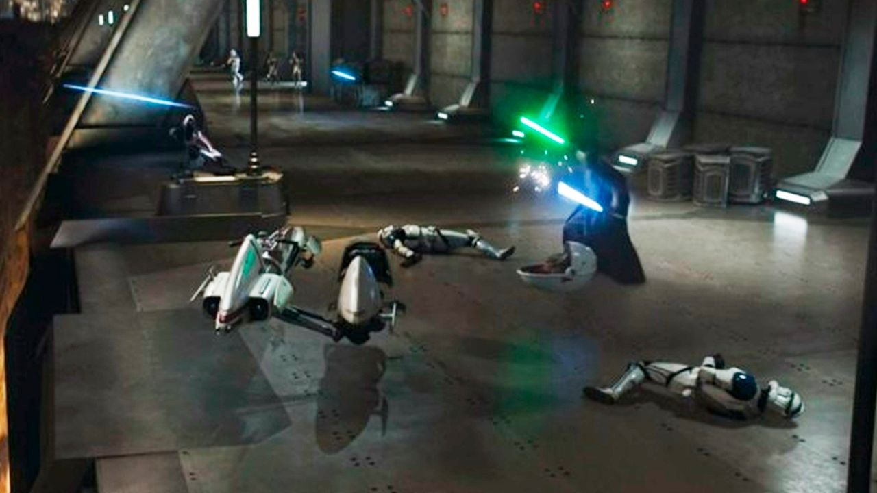 Aunque esto suena genial, cada golpe de la Armera al momento de forjar dicha pieza desbloqueó parte de su traumática experiencia como sobreviviente de la Orden 66. Tal como estaba sucediendo, Grogu recuerda cada vez más mediante flashbacks y en este episodio no fue la excepción, incluso vimos cómo el primer grupo de Jedis (quienes siempre son asesinados) tiene una escena extendida, mientras uno de ellos dice lo siguiente: “¡Al elevador! ¡Lleven al niño con Kelleran!”.