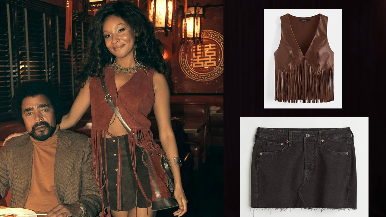 Nabiyah (Simone Jackson) nunca es un miembro oficial de The Six, pero es un gran apoyo para todos ellos, por lo que si quieres recrear uno de sus look emblemáticos, debes buscar una falda negra en tu guardarropa, sino tienes una en H&M podrás comprarla en 399 pesos mexicanos. Mientras que el chaleco con flecos puedes conseguirlo en Shein a tan solo $351.