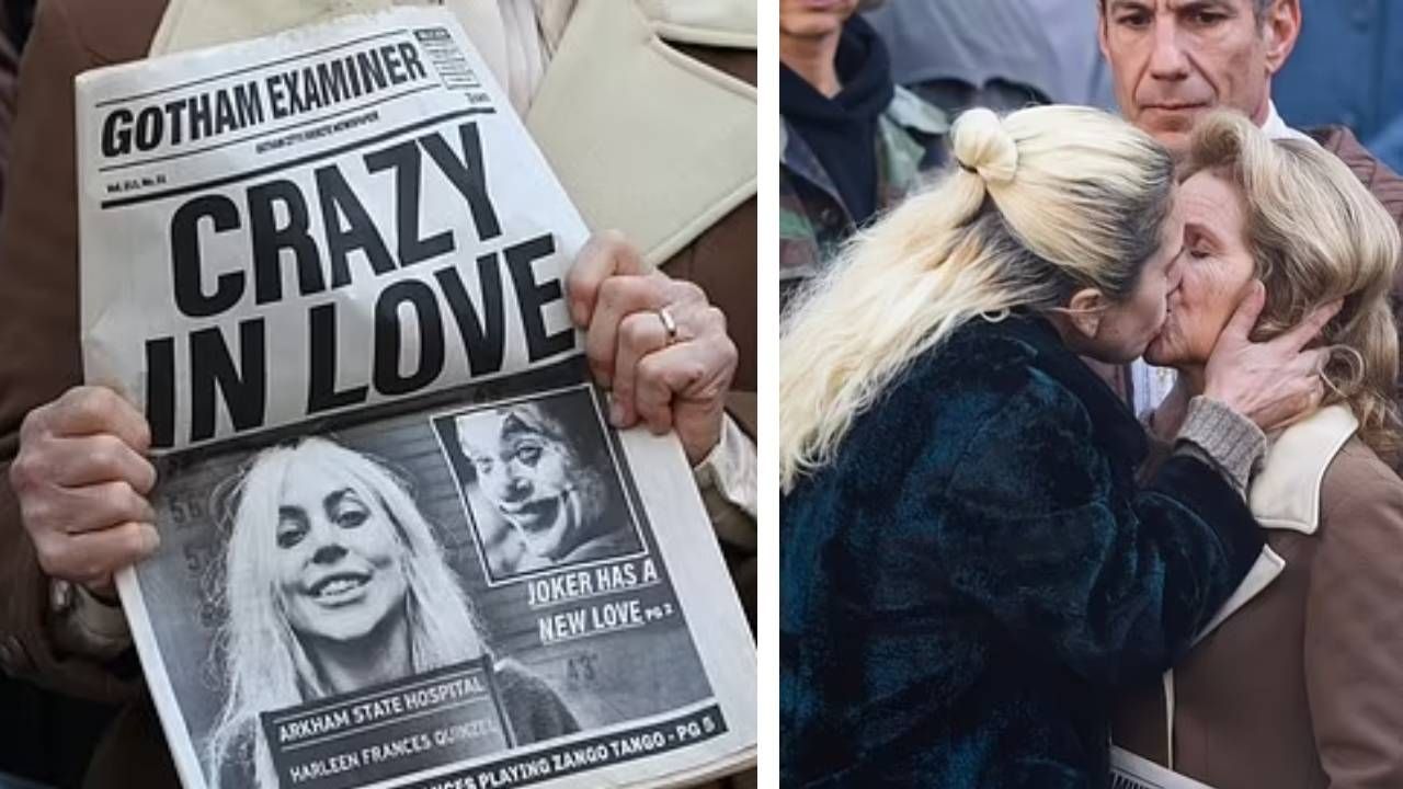 Recientemente compartieron algunas tomas de la ganadora del Oscar por Nace una estrella en pleno vestuario y maquillaje de la famosa doctora Harleen Francis Quinzel, pero ahora salieron imágenes inéditas en donde la actriz y cantante se encuentra besando a una mujer frente a la Corte donde se desarrolla un juicio contra Arthur Fleck. Incluso se pueden apreciar algunos portadas de periódicos de Ciudad Gótica en las que se anuncia el romance entre Harley Quinn y Joker.