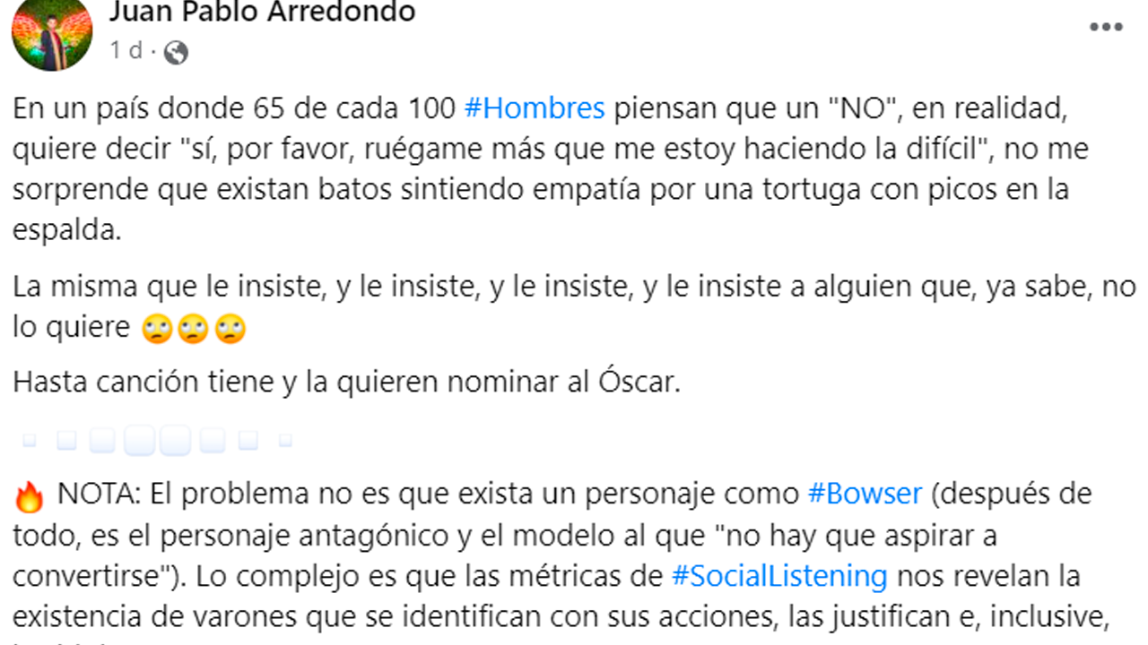Aunque sabemos que Bowser es el personaje antagónico y representa conductas inaceptables en la sociedad, parece que los espectadores lo han convertido en un héroe, incluso hay quienes lo han idolatrado diciendo que que su único error fue enamorarse de la princesa. En Twitter podemos encontrar algunas publicaciones que empatizan con él: "Quédate con quien te mire y te dedique una canción como Bowser", "Al chile yo quería que Peach se quedara con Bowser", "Pobre Bowser solo quería ser feliz con Peach".