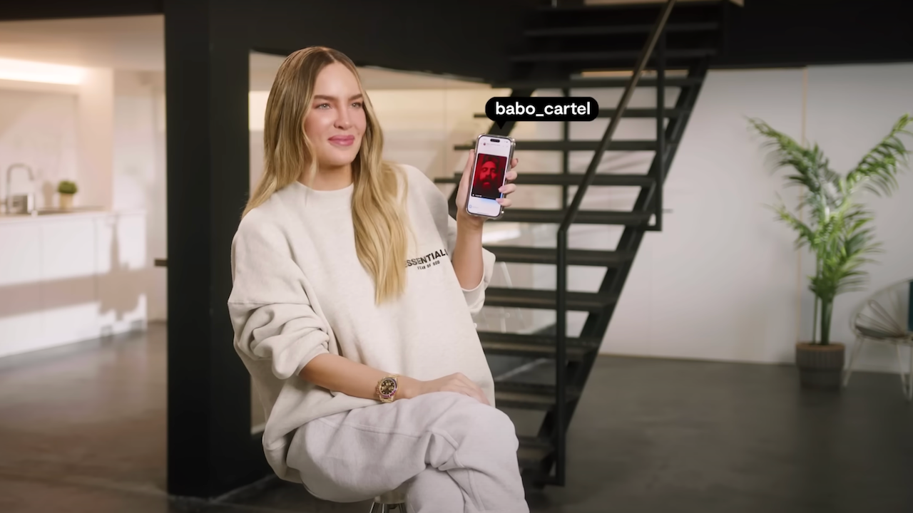 "Estoy encontrando una conversación con Babo, que espero que no me mate. Babo es un rapero mexicano muy cool, tienen que escuchar su música porque a mí me encanta", dijo la cantante acerca de su amistad con Babo. Aunque pudiera pensarse lo contrario, Belinda aclaró que sus mensajes rondan únicamente sobre proyectos musicales e intercambian ideas como "loquitos en el estudio".