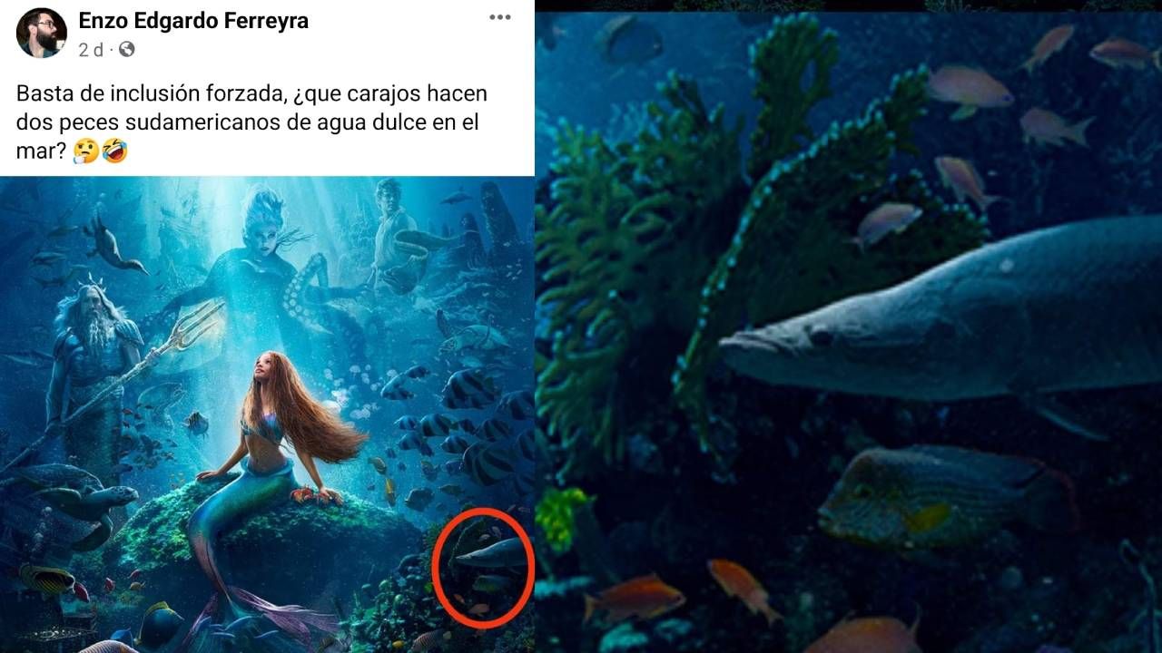 “Basta de inclusión forzada, ¿qué carajos hacen dos peces sudamericanos de agua dulce en el mar?”, publicó Enzo Edgardo Ferreyra por medio de Facebook, señalando en un círculo rojo a las especies que no deberían aparecer en el póster. El post se volvió viral rápidamente y algunos usuarios se burlaron del error al comentar “Los peces: La que puede, puede, y la que no, critica”; “Fueron buscando una mejor economía”, y “Son acuáticos y están haciendo un gran papel, no sean pecistas”.