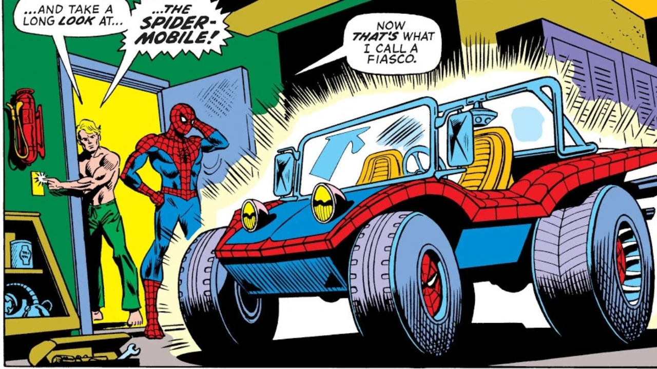 Se trata de un vehículo araña como ningún otro. Sí, estamos hablando de Peter Parkedcar, también conocido como Spider-Mobile. Este automóvil apareció por primera vez en el universo de Amazing Spider-Man #130. En el número, una empresa de publicidad intenta promocionar un nuevo automóvil haciendo una colaboración con un superhéroe, y como Peter Parker no es exactamente rico, finalmente acepta el patrocinio.