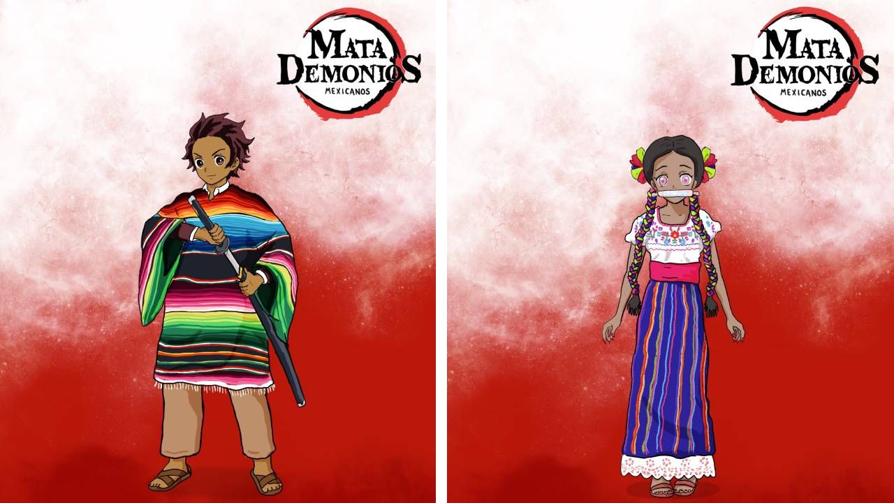 Otras imágenes fueron publicadas en un tweet por @llegaspacheco, quien se cuestionó cómo serían los personajes de Demon Slayer si fueran mexicanos y compartió sus propias ilustraciones, en las que podemos ver a Tanjiro usando un poncho muy colorido y obviamente no olvidó acompañarlo de su espada Nichirin. La siguiente fue Nezuko Kamado portando una blusa de manta con bordados indígenas y una larga falda azul, también bordada. El toque especial fueron las trenzas adornadas con listones, ¿qué te parecen?