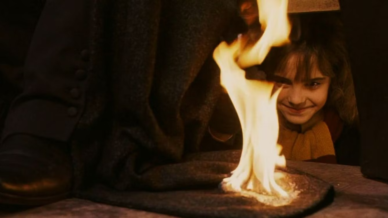 No existe hechizo que Hermione Granger no pueda hacer. En la primera cinta de Harry Potter, la hechicera más brillante de su generación utilizó para encender en fuego las prendas de vestir de Severus Snape durante el primer partido de Quidditch de Harry.