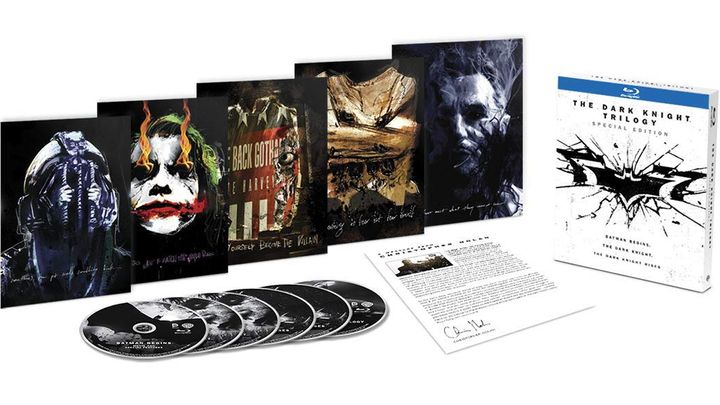Ambos ejemplares contienen una carta “firmada” por el director de la trilogía, además de tarjetas de colección de los diferentes villanos de las películas recreados con ilustraciones artísticas, así como un grabado único en cada uno de los discos con más de 90 minutos de materiales extras que retoman entrevistas con los genios detrás de cada uno de los filmes y otros gigantes de la industria cinematográfica, como Zack Snyder y Guillermo del Toro, además de una conversación entre Christopher Nolan y Richard Donner. Por supuesto, esto tiene más punch si sabes que la segunda y tercera entrega incluyen las secuencias completas filmadas en IMAX.