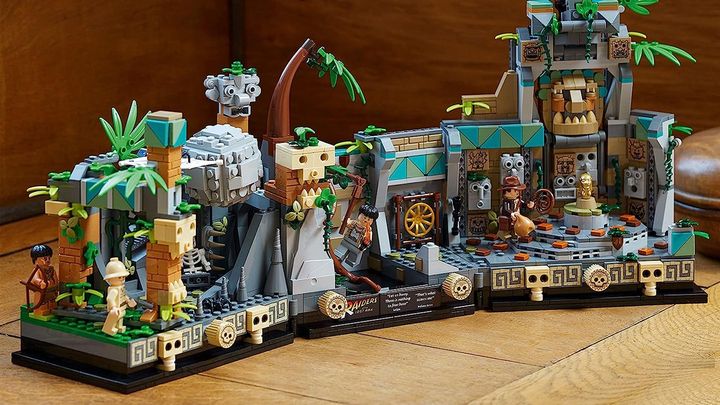 Este paquete del Templo del Ídolo Dorado contiene 1,545 piezas con un precio de 3,671 pesos, que toma como inspiración la secuencia de apertura en la que Indy recupera el artilugio de un templo antiguo lleno de trampas, para después ser traicionado por su guia Satipo (Alfredo Molina) y por el arqueólogo René Bellocq (Paul Freeman). Al set lo complementan cuatro minifiguras (Indiana Jones, Satipo, Belloq y un guerrero Hovito) e infinidad de funciones interactivas. Contiene un pedestal con 4 ruedas que puedes girar para iluminar y ocultar el ídolo, derrumbar una pared, balancear a Indiana Jones por una caverna, entre muchas otras cosas.