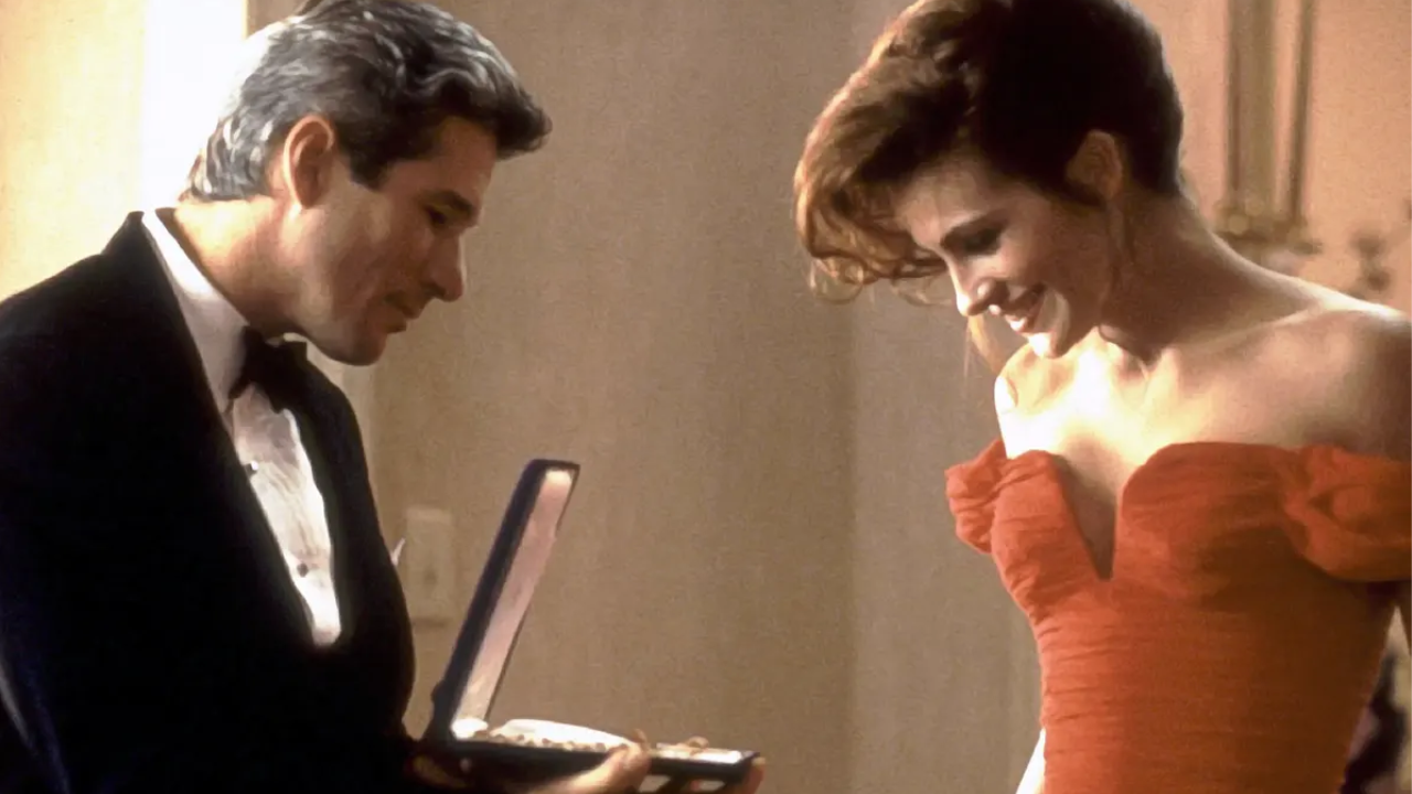Y el proyecto empezó con un tono mucho más oscuro. En el guión original de J.F. Lawton, la prostituta Vivian (Roberts) accede a dejar la cocaína durante su semana con el banquero Edward (Richard Gere), pero al final él la deja en la calle y se marcha. Pero los ejecutivos pensaron que la transformación de Cenicienta de Vivian funcionaría mejor como una comedia romántica. Garry Marshall fue contratado entonces para dirigir.