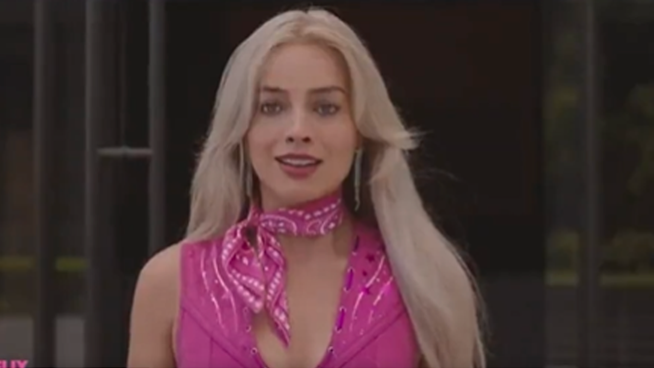 En el video de apenas 27 segundos podemos ver a la famosa muñeca con su icónico outfit vaquero y todo parece indicar que está huyendo de la empresa de juguetes sin saber precisamente que camino tomar. En ese momento Gloria (America Ferrera) aparece en su carro y le dice que suba arrancando a toda velocidad. Sasha (Ariana Greenblatt) exclama preocupada "¡Espero que nadie de la escuela nos haya visto con una Barbie de tamaño real en nuestro auto!".