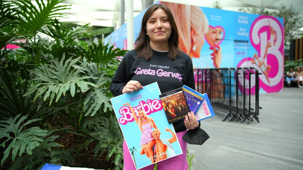 Su amiga tampoco decepcionó en la fila. Un sombrero de vaquerita y un vestido a cuadros inspirado en el outfit de Margot Robbie en la CinemaCon 2023. Ella venía bastante bien armada porque no sólo llevó muñecas Barbie para la firma, sino también el soundtrack en CD de La La Land, un tomo edición especial de El primer hombre en la luna, ambas producciones de Ryan Gosling, y un Funko de Harley Quinn edición El escuadrón suicida de James Gunn. Hey, era obvio que las Harley se iban a hacer presentes, al final Margot es la mujer perfecta para ser el pudín del Joker. Sin olvidar el fanatismo que hay por el cine de Damian Chazelle.