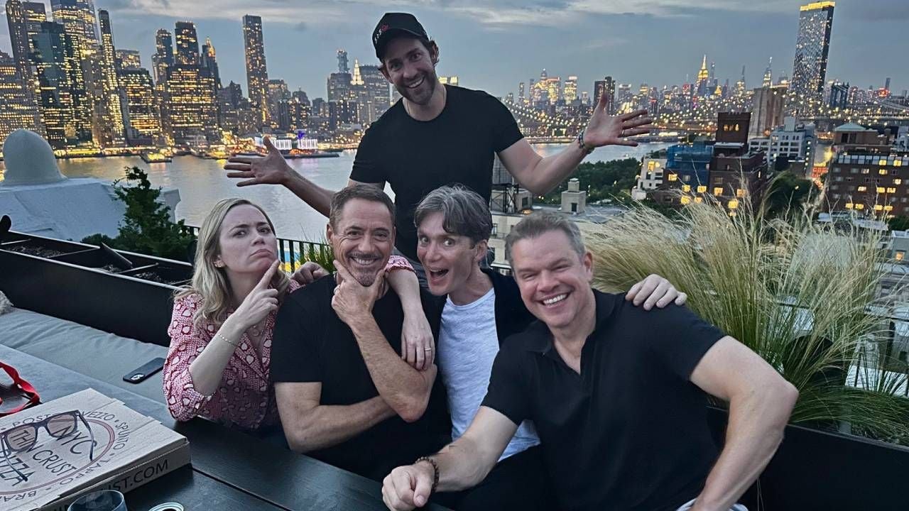 Luego de encontrarse promocionando la cinta en Nueva York, los protagonistas de Oppenheimer se tomaron un descanso y se reunieron en una terraza para pasar una tarde entre amigos. Downey Jr., Murphy, Damon y Blunt acudieron a cenar previo al estreno del filme en salas de cine y presumieron su salida con una postal que muestra detrás de ellos los rascacielos iluminados. Pero además del elenco que ya conocemos, John Krasinski también se encontraba con ellos y la gente se ha preguntado si tendrá una breve participación en el proyecto.