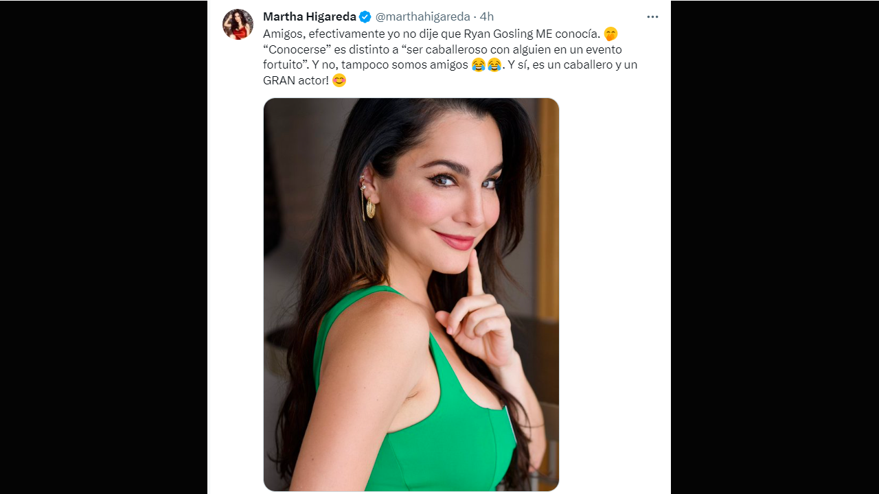 Martha Higareda volvió a incendiar las redes sociales y esta vez debido a su reciente encuentro con Ryan Gosling, la estrella de Barbie. Hace unos días el actor estuvo en tierras mexicanas junto a Margot Robbie y America Ferrera para promocionar la nueva película de Greta Gerwig, por lo que ofrecieron diversas entrevistas y una de ellas fue con la protagonista de Amar te duele, quien no dudó en compartir las fotografías del encuentro en su cuenta de Twitter, enloqueciendo a cientos de usuarios.