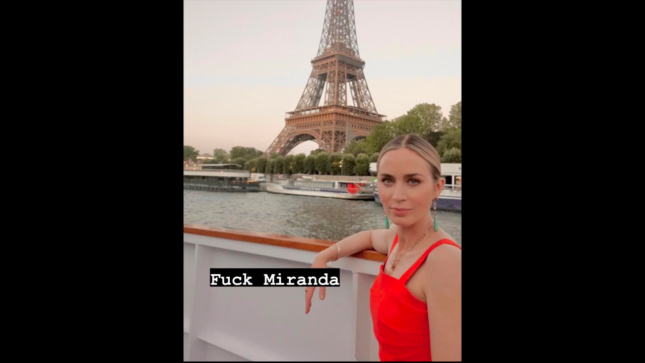 "F*ck Miranda", fue el contundente mensaje que Emily Blunt le envió a Miranda Priestly, la terrible y refinada editora de la revista Runway, interpretada por Meryl Streep en 2006. Con la Torre Eiffel de fondo y a bordo de un elegante crucero que navegaba por el río Sena, la fotografía compartida por la actriz de La chica del tren hacía referencia a Emily Charlton, su personaje en la película El Diablo Se Viste a la Moda. Luego de mucho esfuerzo, trabajo duro y algunas humillaciones de su jefa, Emily se queda sin ir a París y en su lugar va Andrea, el personaje de Anne Hathaway.