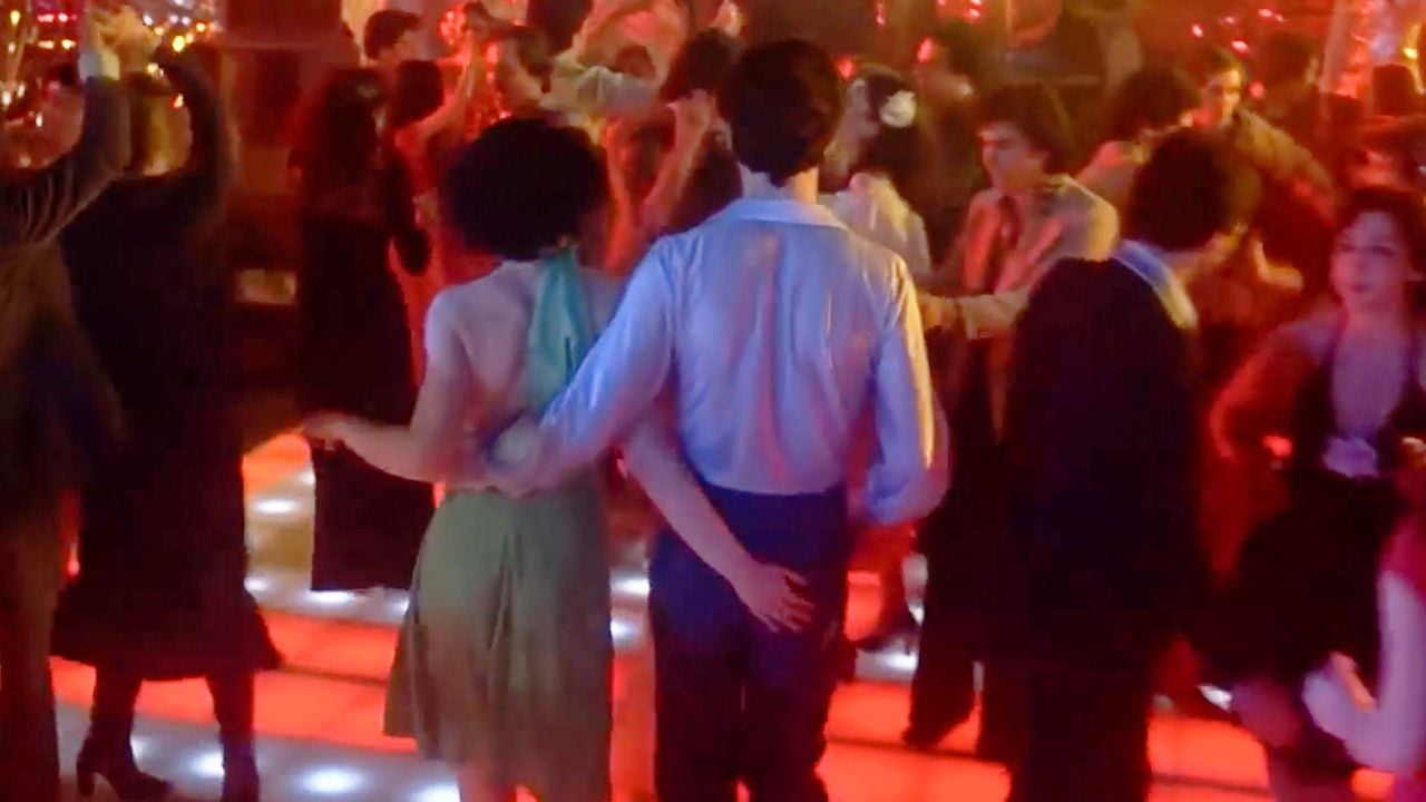 Y si esto no fuera ya algo para hacer notar, cuando Travolta la toma de la cadera camino a la pista de baile, ella decide tocarle su trasero durante todo el trayecto (sabía lo que quería y eso se aplaude). El resto de la escena vemos a los dos personajes bailando como se debe, eso sí, el chicle nunca se fue y se quedó en todo momento, dándole un toque divertido a este momento.