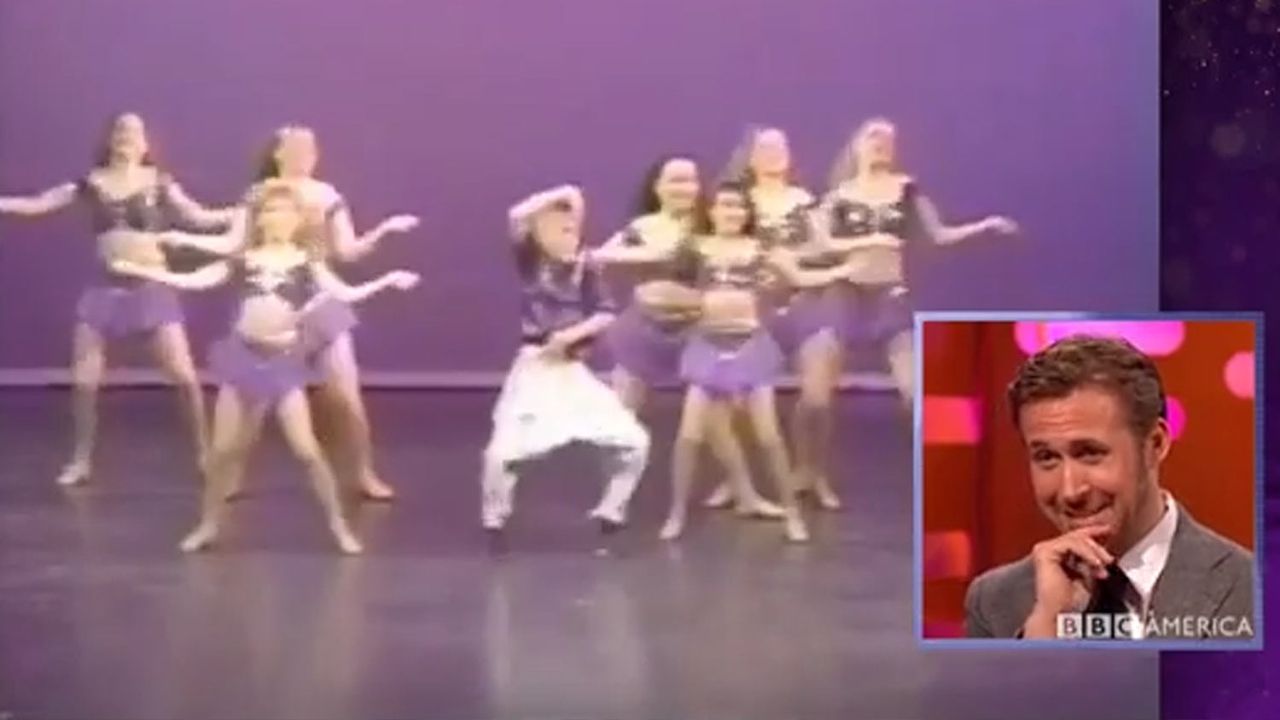 En el video puede verse a Ryan Gosling dando todo en la pista de baile, pues además de ser el único niño en la agrupación, llevaba puesto un pantalón holgado plateado y una camisa morada con algunos colguijes que se movían por todas partes. Y claro, hizo algunos pasos prohibidos que emocionaron a los espectadores del programa, todo esto era recordado con cierta pena por parte de Ryan, quien no dejaba de cubrirse el rostro con una mano y recordar entre risas este momento.