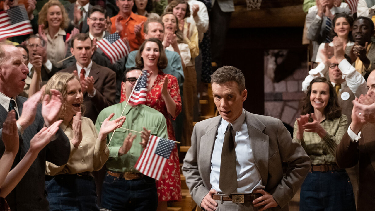 El error se puede ver durante el discurso de victoria de la Segunda Guerra Mundial pronunciado por Robert Oppenheimer. Durante la escena, los residentes de Los Álamos agitan varias banderas estadounidenses que presentan un número incorrecto de estrellas. Las banderas en la película tienen 50 estrellas (lo que tendría sentido en la actualidad), pero en la época en la que se desarrolla esta secuencia en particular (1945), la bandera solo debería tener 48 estrellas.