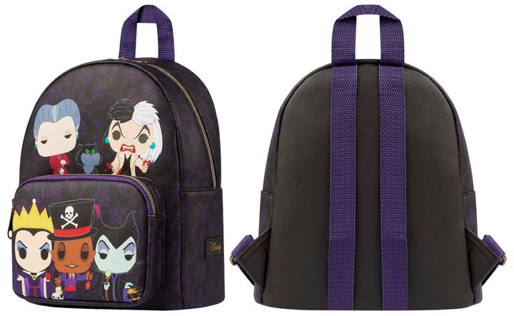 La mochila tiene un hermoso diseño en la que sus villanas tiene un aspecto de sus ediciones de Funko Pop!; sin embargo, ellas no vienen solas, ya que a su lado la maldad crece con dos villanos más que están a su lado: el gato Lucifer y el Dr. Facilier (este último de La princesa y el sapo). También cuenta con correas de hombros ajustables y cierres con lindos detalles de la marca. Asimismo, sus dimensiones van desde los 23 centímetros de ancho x 27 centímetros de alto hasta 11 centímetros de profundidad.
