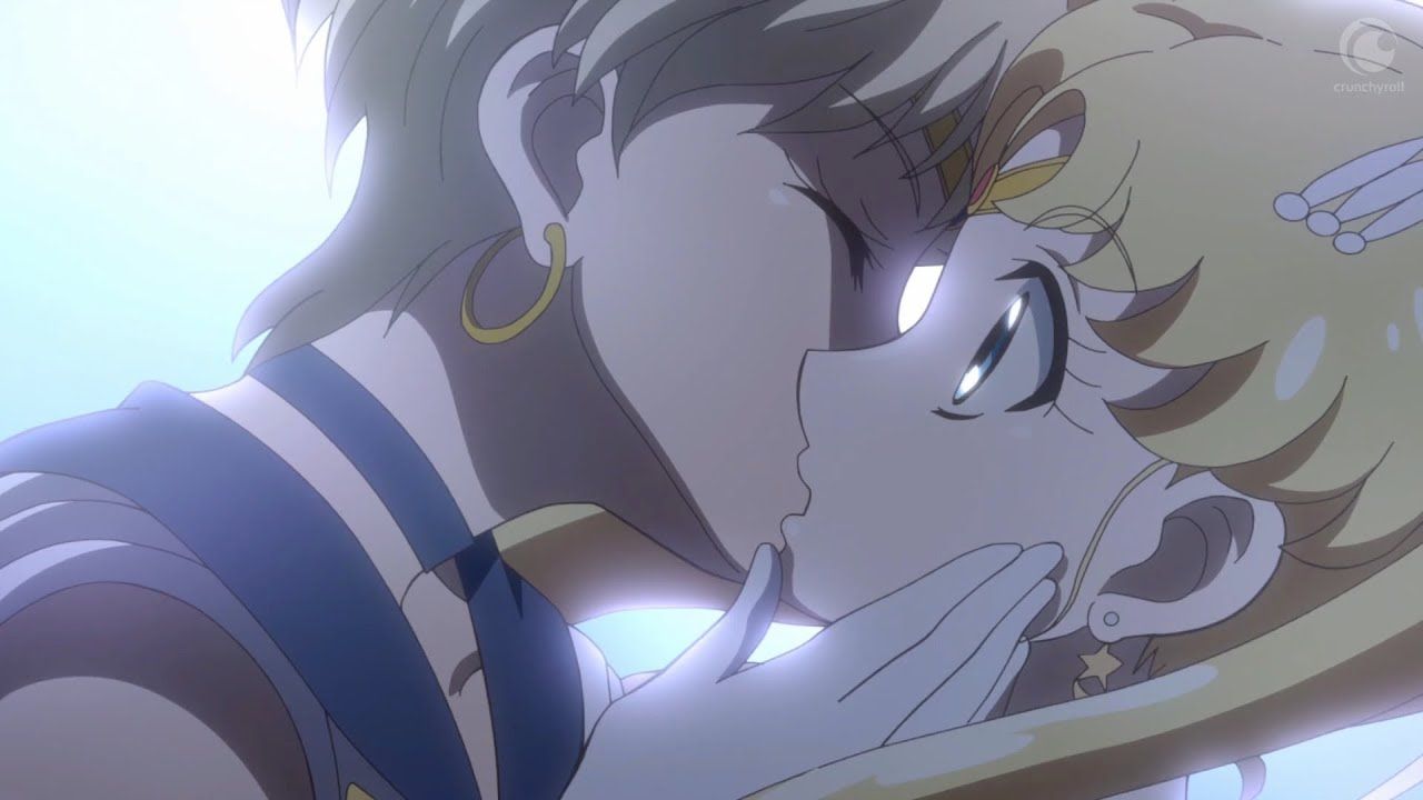 Siendo Sailor Moon Crystal una versión animada más fiel al manga original, ésta sí dejó ver uno de los momentos más icónicos de las historietas. La protagonista, Serena, comparte un beso con Sailor Uranus. Inicialmente, la escena fue censurada y este momento quedó fuera, lo que enfureció a los fans.