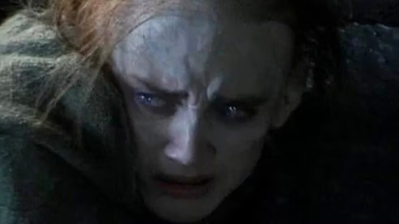 A medida que la corrupción del anillo se ha ido apoderando cada vez más de él en las cintas, Frodo actúa de forma incontrolable para proteger a su tesoro, mostrando destellos similares a Gollum. En la toma alternativa se presentaba una visión desde la perspectiva de Faramir, mostrando cómo podría haber sido Frodo si estuviera completamente destrozado por el anillo. El Frodo con forma de Gollum ha perdido el cabello, aunque cuenta con unos pocos mechones, además de tener una apariencia pálida y enfermiza. En la secuencia, Frodo está temblando y actuando asustadizo, resaltando aún más el efecto tóxico del anillo.