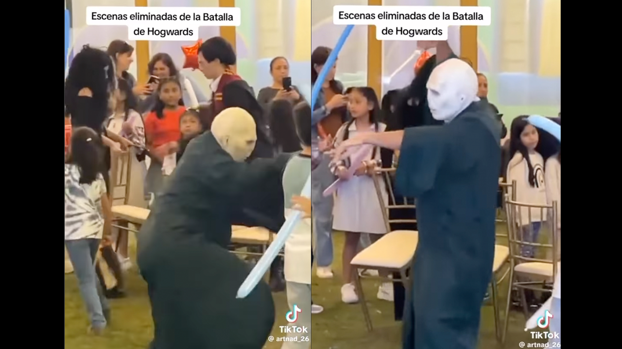 En esta ocasión, no fue necesario hacer uso de la inteligencia artificial para ver algo sumamente insólito que probablemente sería muy difícil que sucediera en el verdadero mundo mágico de J.K. Rowling. ¿Te imaginas al mago oscuro más poderoso de todos los tiempos… bailando? Así como lo lees, el Señor Tenebroso se olvidó por un momento de sus malvados planes para matar a Harry Potter y así conseguir la inmortalidad, para pasar un buen rato de fiesta.