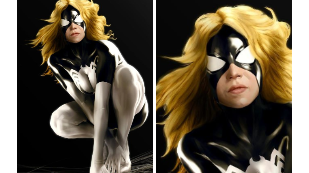 Si bien las fotos del set solo han mostrado a Sweeney en ropa de calle, el artista Jaxson Derr (@JaxsonDerr) compartió en su Instagram cómo se vería la actriz con el traje blanco y negro que usa Spider-Woman en los cómics. La imagen presenta el logotipo, los brazos y las piernas blancos del icónico traje de Spider-Woman y el torso negro. Los ojos blancos del héroe y su largo cabello rubio también se pueden ver en la obra de arte, que muestra a la Mujer Araña de Sweeney agachada sobre una telaraña.