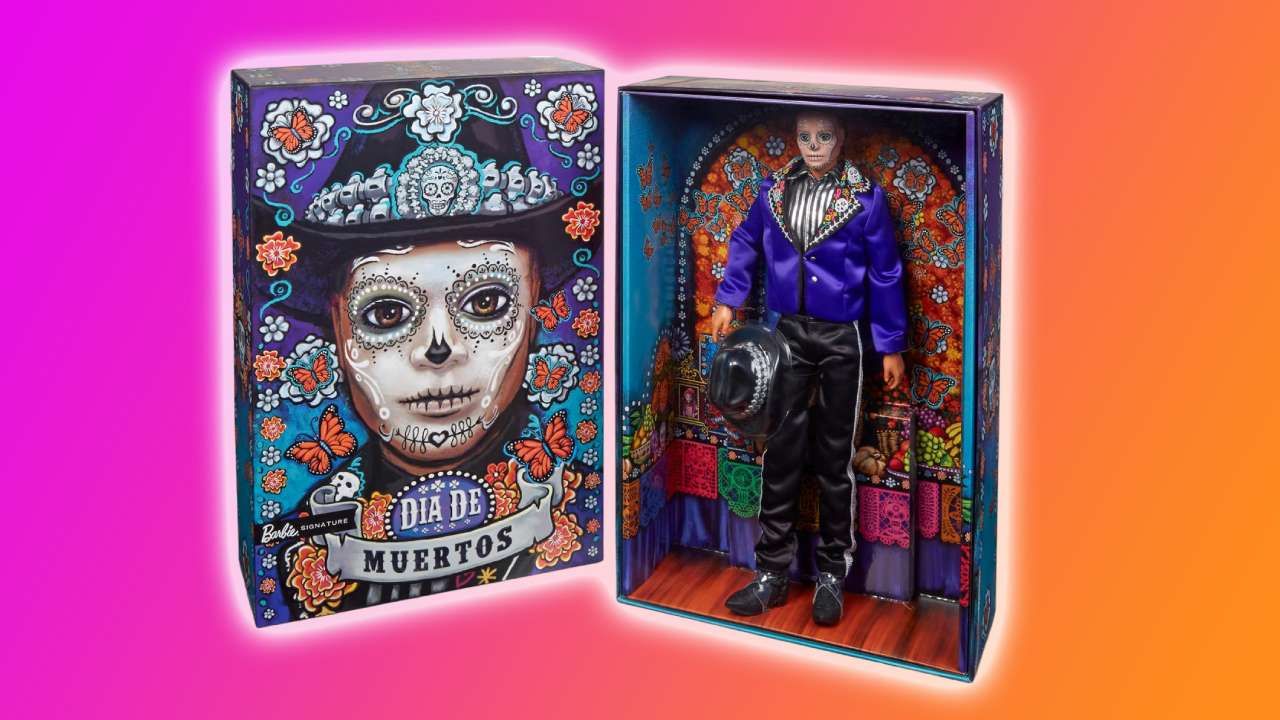 Por otro lado, Ken luce una chaqueta azul con detalles de huesos bordados en las solapas, un sombrero con detalles de calaveras de azúcar que hacen juego con su pintura facial y sus botas. Incluyen un certificado de autenticidad y su caja está inspirada en una ofrenda de estas festividades.